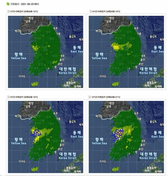 12시간 예측강우는 기상청 초단기예보자료를 활용했으며 1시간에서 12시간까지 KLES모델에서 매시간 계산해 산사태 발생을 예측한다.