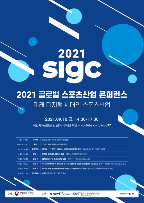 이번 학술회의에서는 코로나19로 가속화된 비대면화, 4차 산업혁명으로 촉발된 디지털화 등 다양한 환경 변화로 나타나는 스포츠산업의 새로운 흐름을 알아보고 미래 디지털 시대에 스포츠산업의 발전, 신시장 창출을 위한 정책적 지원 방향을 논의한다.