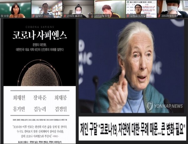 동아리 학생들은 현재의 코로나19의 유행과 1918년 일제강점기 시절 스페인 독감의 유행을 비교하는 탐구 활동을 전개한 후, 탐구 활동 발표와 함께 저자특강을 직접 기획, 운영해 학생, 교직원에게 흥미로운 주제를 접할 수 있는 의미 있는 시간을 선사했다.