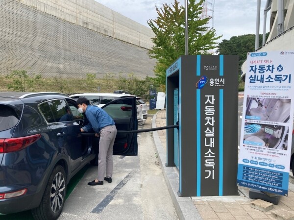 차량용 실내 소독기는 야외 주차장에 설치돼 승용차부터 어린이 통학버스 등 대형 차량도 이용할 수 있다.
