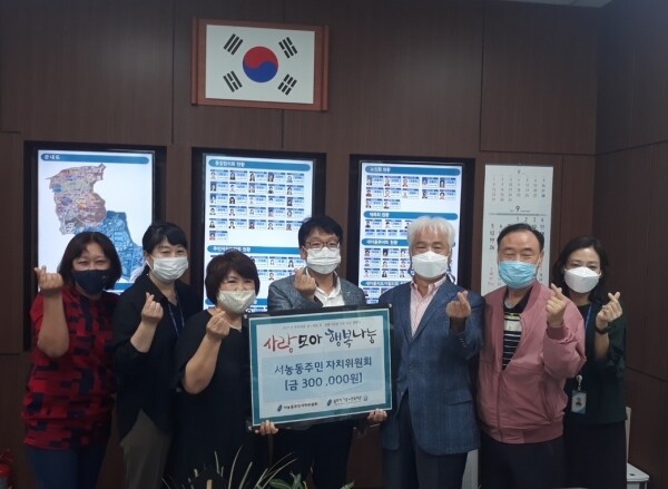 한편 서농동 주민자치위원회는 지역의 소외계층을 위한 의료비 지원, 성금 기탁 등 지역 주민들을 위한 다양한 나눔 활동을 지속적으로 실천하고 있다.