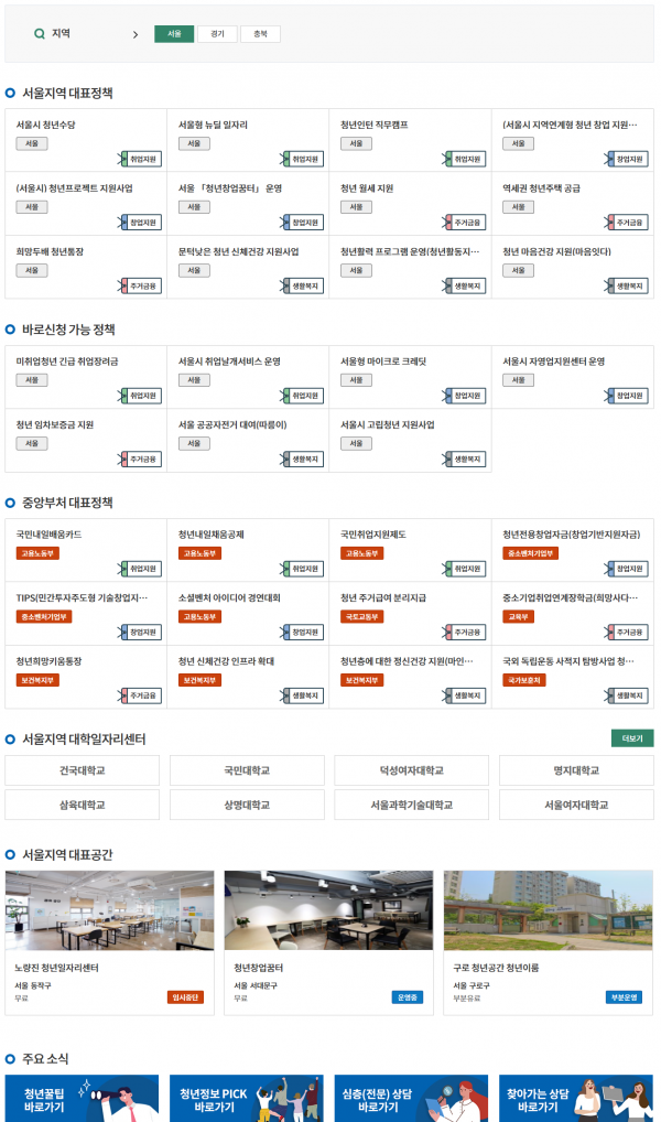 한국고용정보원은 지역별 핫 청년정책 콘텐츠를 발굴하고 서울·경기·충북지역의 대표 청년정책 및 활동공간 정보를 소개했다.