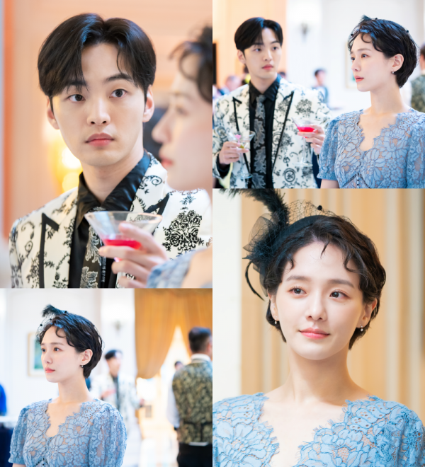 파티를 즐기던 무학과 달리. 어느 순간 무학의 시선은 귀족 같은 헤어스타일과 파란빛 드레스로 우아한 매력을 끌어올린 달리에게 고정된 듯한 분위기다.