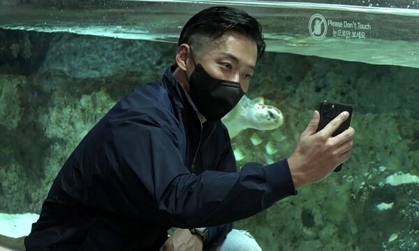 이번엔 드라마 ‘검은 태양’으로 컴백을 앞두고 아쿠아리움을 찾아 '셀프 거북이 징크스'를 제조한다고 해 시선을 강탈한다.
