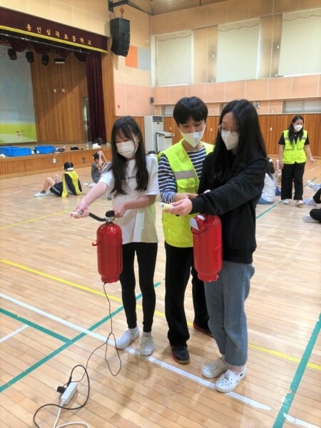 용인심곡초 6학년 학생들은 이번 교육에서 AR, VR, 소화기, 심폐소생술 마네킹 등을 활용해 화재 안전, 응급처치, 물놀이 안전 등을 배운다.