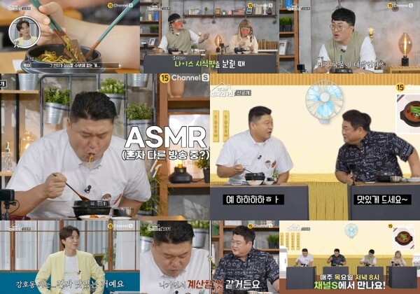 강호동은 홀로 다른 방송을 찍고 있는 듯 뚝배기에 초 밀착해 ASMR 먹방을 펼쳤다.