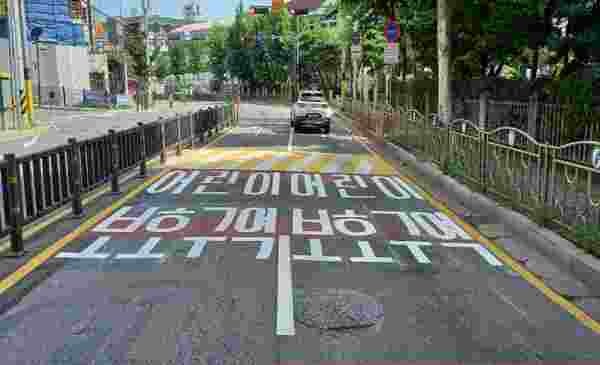 또 어린이들이 차선으로 뛰어드는 일을 막기 위해 방호울타리도 설치했다.