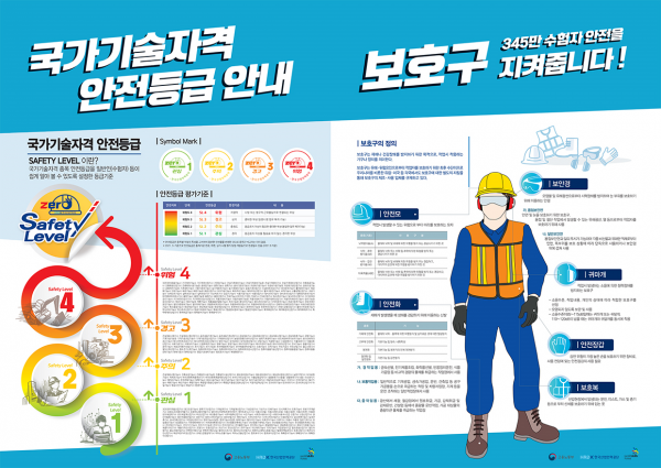 새로운 안전기준지표는 정부의 안전중심 경영원칙에 따라 안전관리 법률과 한국직업사전 등을 활용해 국가기술자격 종목별 위험 요소 수준을 파악하고 안전진단 전문가의 자문을 통해 국가기술자자격 안전등급을 세분화했다.