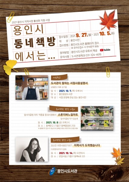 현장 참여는 코로나19 상황에 따라 변동될 수 있으며 참가를 희망하는 경우 도서관정책과 및 각 서점으로 문의하면 된다.