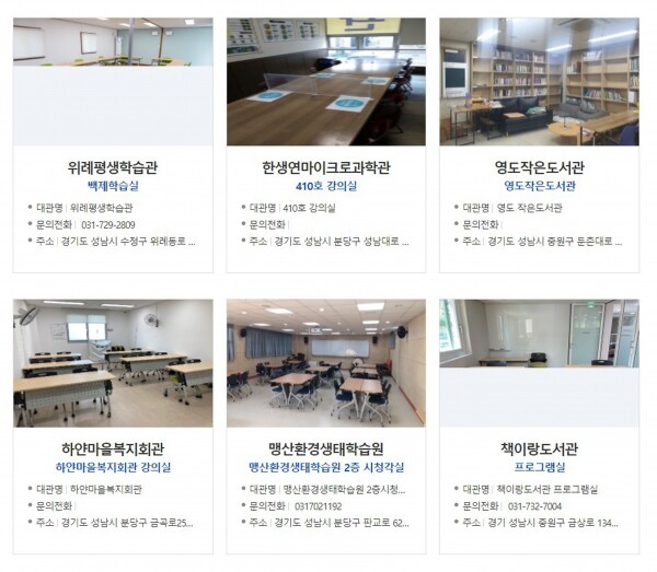 현재 성남시 ‘공간공유’ 참여 기관·시설은 황송·수정중앙노인종합복지관, 중앙동복지회관, 책이랑도서관 등 32곳이다.