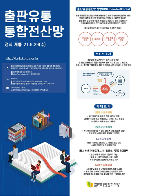 이제 출판사가 발간 도서의 표준화된 세부 정보를 통합전산망에입력하면, 이 정보가 전산망에 연계된 유통사와 서점에 공유돼 유통사와서점은 더욱 빠르고 정확하게 발간 도서에 대한 표준화된 정보를 확보할수 있다.