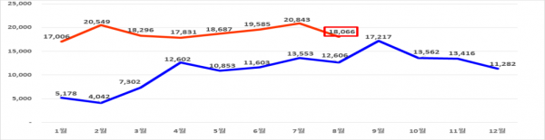 올해 8월까지의 총 판매액은 15.1조원으로 지난해 같은 기간 판매액과 비교할 때 약 176% 증가했다.