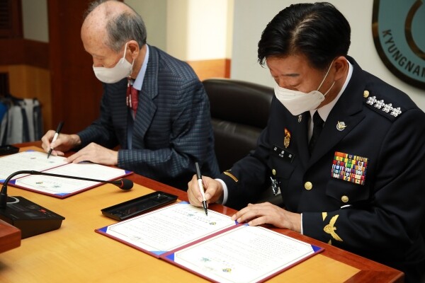 이날 협약식에는 김홍희 해양경찰청장과 경남대 박재규 총장을 비롯해 해양경찰청 김해철 교육훈련담당관, 유충근 창원해경서장, 경남대 김재구 학생처장, 조현성 학생부장 등 관계자가 참석했다.