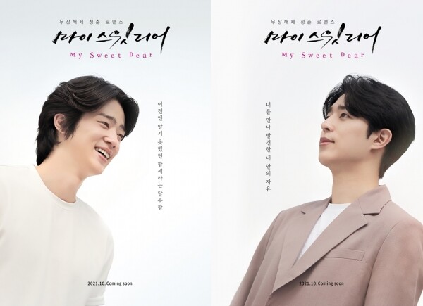 올 10월 공개 예정인 BL웹드라마 ‘마이 스윗 디어’ / 제작 스튜디오 윈썸, 콘텐츠몬스터) 측은 5일 정우와 도건의 ‘만찢 비주얼’이 담긴 캐릭터 포스터를 공개했다.
