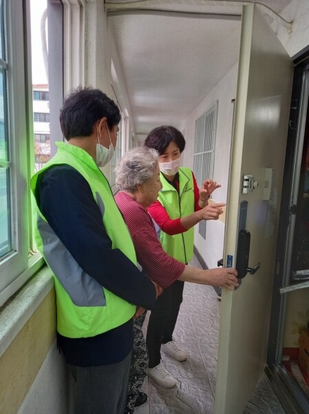 이날 지역사회보장협의체 위원 3명은 대상 가정을 방문해 초인등을 설치할 수 있도록 돕고 작동 방법 등을 안내했다.