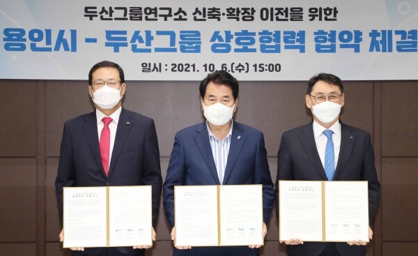용인시는 6일 시청 시장실에서 두산그룹과 수소 산업 등 미래 신성장 사업 육성을 위해 두산그룹연구소 신축·확장 이전을 위한 상호협력 양해각서를 체결했다고 밝혔다.