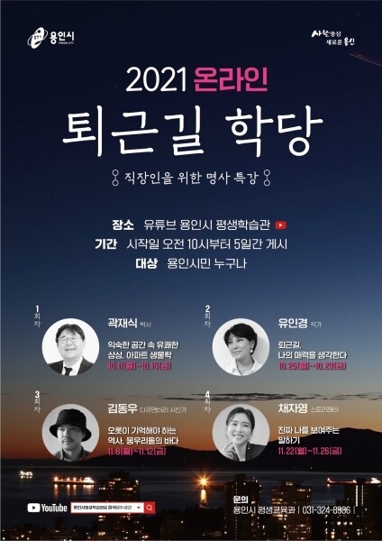 특히 특강은 용인시평생학습관 공식 유튜브 채널에 회당 5일간 게시해 시간과 장소에 구애받지 않고 관심 있는 시민이면 누구나 들을 수 있도록 할 계획이라고 전했다.