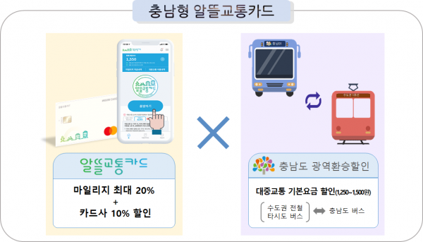 ‘충남형 알뜰교통카드’는 별도의 카드를 발급받는 것이 아니라 알뜰교통카드 이용자가 현행 알뜰교통카드로 충청남도와 수도권 간에 대중교통수단을 이용할 때 환승할인을 지원하는 지역맞춤형 지원 프로그램이다.