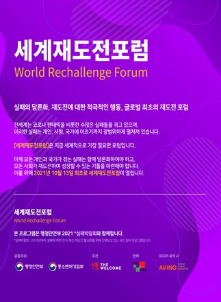 관련분야 전문가와 관계자들이 모여 실패가 재도전으로 전환될 수 있도록 실패와 재도전 사례를 공유하고 포용하는 문화를 국내·외로 확산시킬 예정이다.