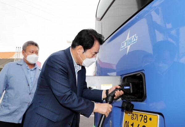 이날 백 시장은 전기 버스 충전을 시연하기도 했다.
