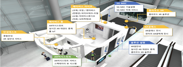 ‘5G 모바일 분산 서버실행 체험존’에서는 고성능 컴퓨팅 작업을 원격에서 처리해, 대용량의 콘텐츠를 내려받아 설치하지 않아도 실시간으로 초저지연 콘텐츠를 체험할 수 있고 코엑스 지하상가 등을 3차원 가상공간에 똑같이 구현한 ‘거울세계’를 바탕으로 스마트폰을 통한 ‘증강현실 길안내’ 서비스도 받을 수 있다.
