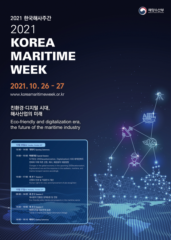 올해 행사는 ‘친환경·디지털시대, 해사산업의 미래’라는 주제 아래 선원·친환경·해양디지털 3개 세션으로 나뉘어 진행되며 40여명의 연사 및 전문가들이 참여해 코로나19, 기후변화 등 글로벌 위기를 극복하기 위한 국제적 협력방안 등을 모색할 예정이다.
