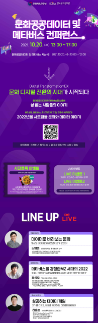 한편 시상식 이후 ‘문화, 디지털 전환의 시작’이라는 주제로 ‘문화공공데이터 및 메타버스 학술대회’가 열린다.