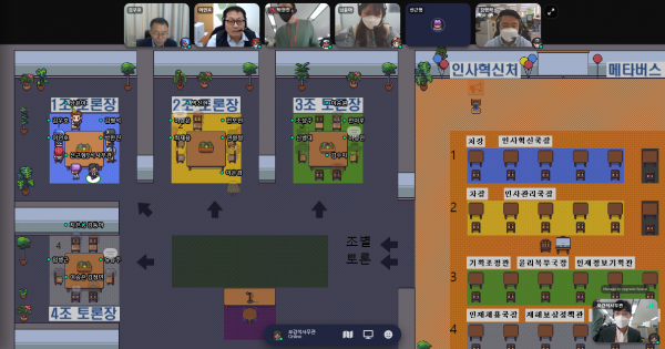 이날 간담회는 김우호 인사처장을 비롯한 국장급 간부 공무원과 새천년세대 공무원이 5인 1조로 총 4개조를 이뤄 각각 확장가상세계에서 공직문화 개선을 위한 의견을 나눴다.
