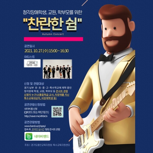 이번 사업은 코로나19 유행 장기화로 지친 심신을 음악으로 치유하고 청각장애학생, 학부모, 교원 등 공연 관람 대상자 간 긍정적 유대관계를 형성하고자 마련했으며 청각장애학생, 교원, 학부모 등 공연 관람 신청자 누구나 참여가 가능하다.