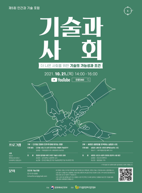 지난 2020년 11월에 첫 문을 연 ‘인간과 기술 포럼’은 기술의 발전이우리의 일상에서부터 인간의 존재와 삶의 양식에 이르기까지 큰 영향을미치고 있지만 ‘인간을 위한 기술’에 대한 논의는 충분하지 않다는 인식아래 이를 사회에 확산하고 인문적 해법을 모색하기 위해 마련한 것이다.