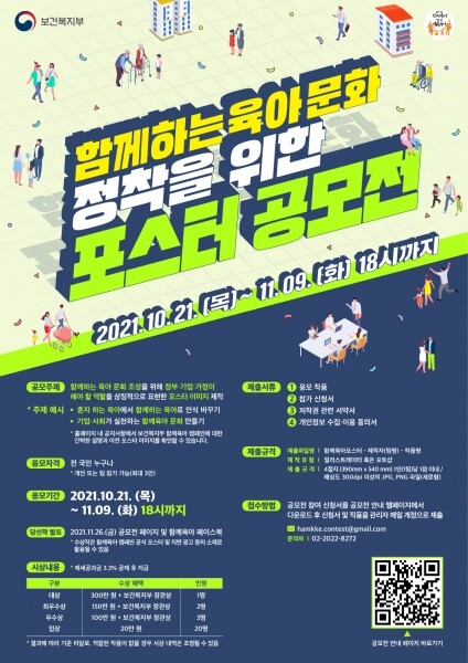 ‘함께하는 육아 문화 정착을 위한 포스터 공모전’에 대한 자세한 사항은 공모전 누리집에서 확인할 수 있다.