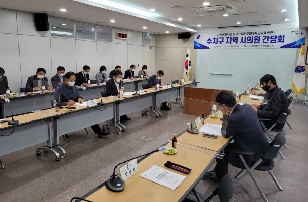 이날 간담회에는 윤원균 용인시의회 자치행정위원장 등 시의원 6명과 김정원 수지구청장 등 공무원 30명이 참석했다.
