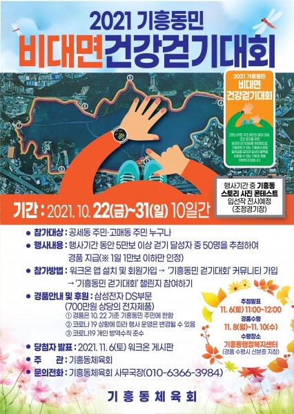 이번 행사는 코로나19로 지친 지역주민에게 걷기 운동을 통해 활력을 제공하고자 기흥동체육회가 마련했다.