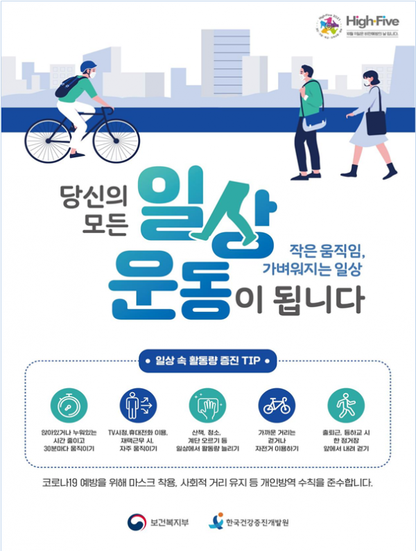 한국건강증진개발원 조현장 원장은 “코로나19 장기화로 운동 등 외부활동이 줄어든 만큼 많은 분들이 답답함을 느끼고 있을 것으로 생각한다”며 “일상 속에서 누구나 쉽게 실천할 수 있도록 다양한 교육·홍보 콘텐츠들을 개발해 적극적으로 확산하겠다”고 밝혔다.