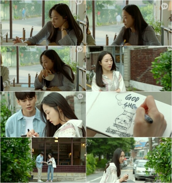 이날 공개된 회차에서 김예은은 작은 바 테이블의 카페에서 커피 한 잔 마시며 노트를 펼쳐 놓고 낙서하듯 드로잉을 하고 있었다.