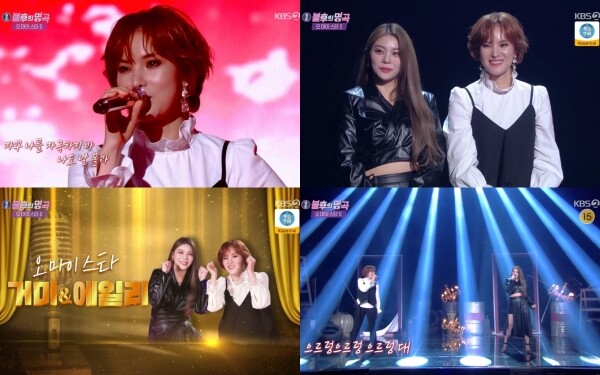 만능 보컬 거미와 파워 디바 에일리의 만남으로 지난주 공개된 예고부터 화제를 불러 모았던 두 사람은 EXO의 '으르렁'을 R&B 소울 장르로 재해석, 파워풀한 보컬과 완벽한 케미로 역대급 무대를 선보인 것. 선곡부터 모두를 놀라게 했던 거미와 에일리의 '으르렁'은 원곡과는 180도 다른 새로운 곡으로 재탄생했다.