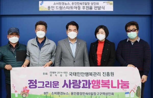500만원 상당의 책가방 100개는 소비환경뉴스와 행복진흥원이, 200만원 상당의 생일케이크 100개는 용인민속 5일장 2구역 상인회가 마련한 것이다.