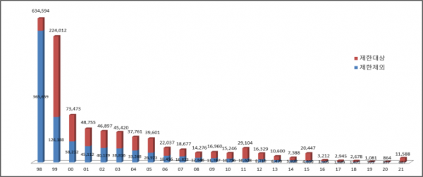 또한, ’98년 채무보증이 금지된 이후 채무보증금액은 지속적으로 감소하는 추세지만, 기업들이 규제 대상 이외의 방식을 통해 채무보증 수요를 충족하고 있을 가능성이 있는 것으로 지적된다.