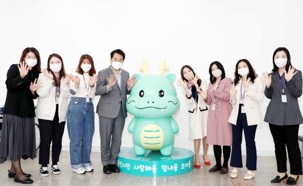 백군기 시장은 조아용 조형물 앞에서 직원들과 기념 사진을 찍고 조아용을 다방면으로 활용해 시를 널리 알려달라고 당부했다.
