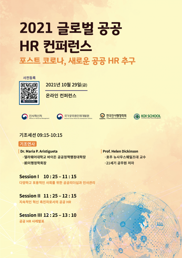 세계 공공인적자원 경험과 사례를 공유하고 발전 방향을 논의하기 위해 매년 개최하는 이번 행사의 올해 주제는 ‘코로나 이후, 새로운 공공인적자원 추구’이다.