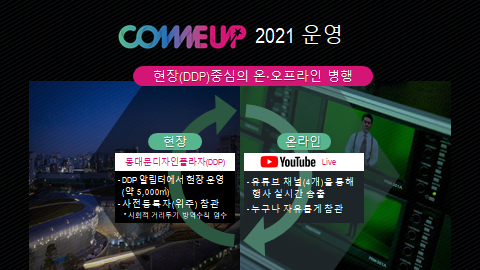 ‘컴업2021’은 코로나 이후 급격한 변화 속에서 유니콘 기업을 꿈꾸는 스타트업들이 시대 흐름을 조망하고 다가올 미래 시대를 준비할 수 있는 만남의 장을 마련한다는 목표로 ‘Meet the Future ? Transformantion’이라는 슬로건에 의미를 담아냈다.