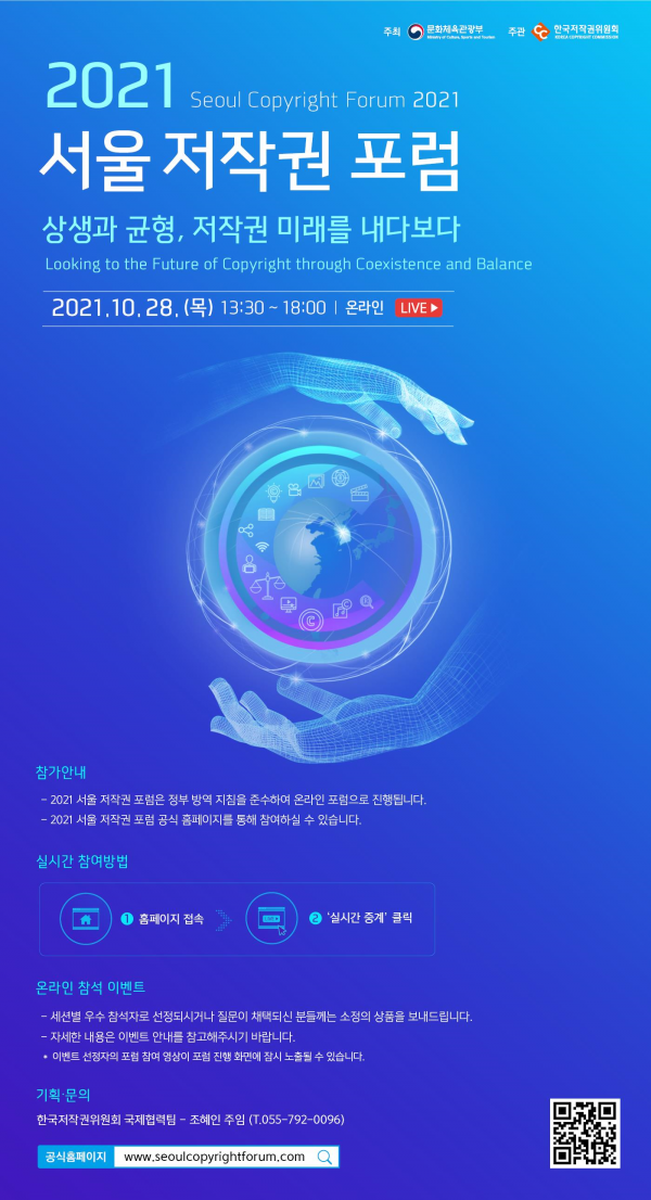 이에 이번 토론회에서는 ‘상생과 균형, 저작권 미래를 내다보다’를 주제로 확장된 온라인 플랫폼의 역할, 이와 관련한 저작권 산업계 관계자·권리자의 입장을 살펴본다.