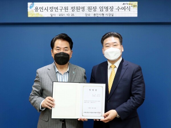 28일 용인시에 따르면 정 원장은 이날 오전 시장 집무실에서 백군기 시장으로부터 임명장을 받고 업무를 시작했다.
