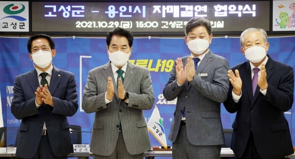 이번 협약은 지난 5월 고성군이 용인시에 행정, 관광, 문화, 농축산물 등 4대 분야에 대한 상호 교류와 협력을 제안하면서 진행됐다.