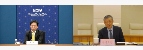 양측은 10.29. 한중 외교장관회담에 이어 한반도 정세 관련 종전선언 문제를 포함해 한반도 평화프로세스의 조기 재가동을 위한 협력 방안에 대해 논의했다.