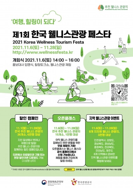 6일 원주 뮤지엄산에서 열리는 개회식을 시작으로 전국 36개 추천웰니스관광지 할인캠페인, 15개 추천웰니스관광지 오픈클래스가 진행된다.