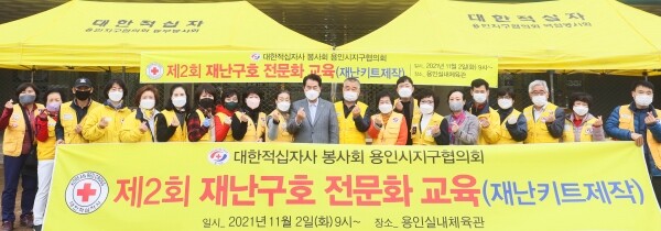 이날 교육에는 대한적십자사봉사회 용인시지구협의회 회원 30여명이 참여해 재난 안전 교육을 실시하고 재난구호 물품 키트 100개를 제작했다.