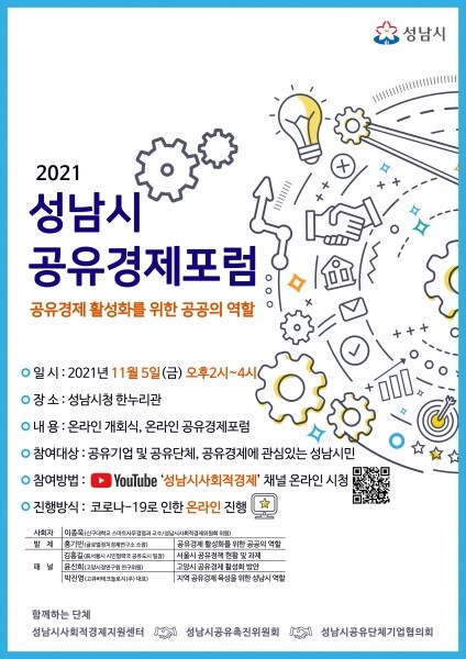 이번 포럼은 유튜브 ‘성남시사회적경제’ 채널로 생중계해 시민 누구나 시청할 수 있다.