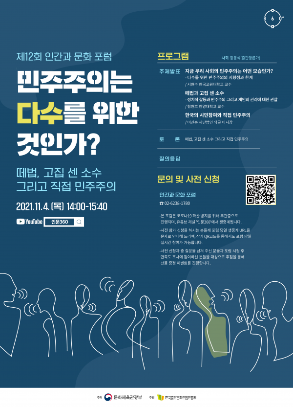 우리의 일상과 사회·문화적 변화에 대한 인문적 담론을 확산하기 위해 기획된 ‘인간과 문화 포럼’은 지난 2020년 12월 3일을 시작으로 매월 첫 번째 목요일에 열려 왔으며 이번에 마지막 열두 번째를 맞이했다.