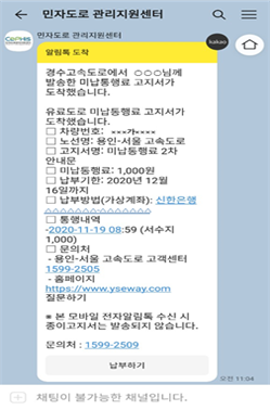 한편 국토부와 민자도로센터는 강제징수 대상자에 대한 미납사실 안내를 기존의 불편한 종이고지서 대신 모바일로 전자고지 받도록 시스템을 개선·구축했다.